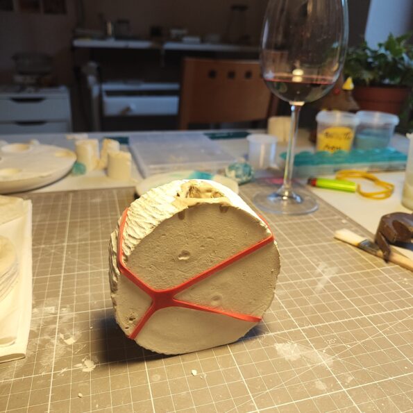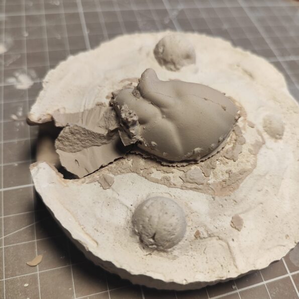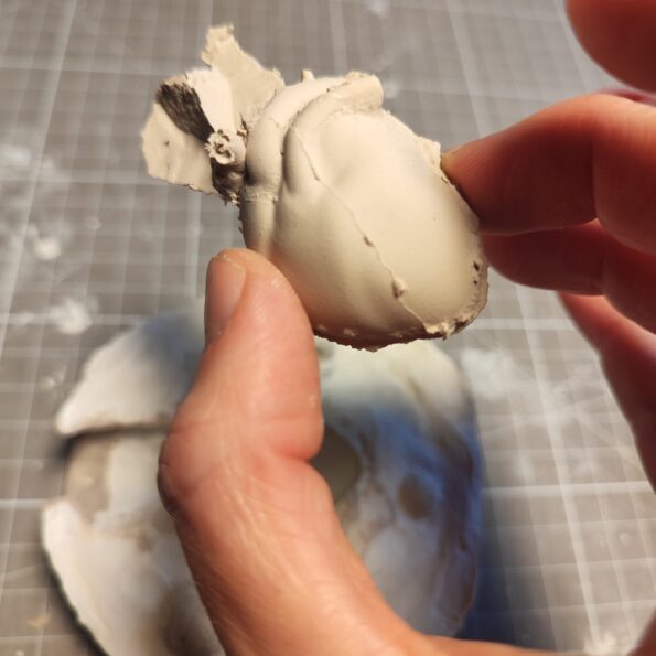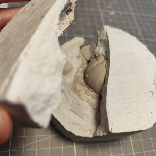 Cuando el molde ha secado lo suficiente —en este caso, unas 36 horas, aunque podría ser más o menos— siento que algo en él cambia. No es solo cuestión de reloj; es una sensación. La arcilla deja de estar fría y pegajosa. El olor se vuelve más terroso, más estable. Y la superficie, si la tocas con cuidado, ya no se hunde.