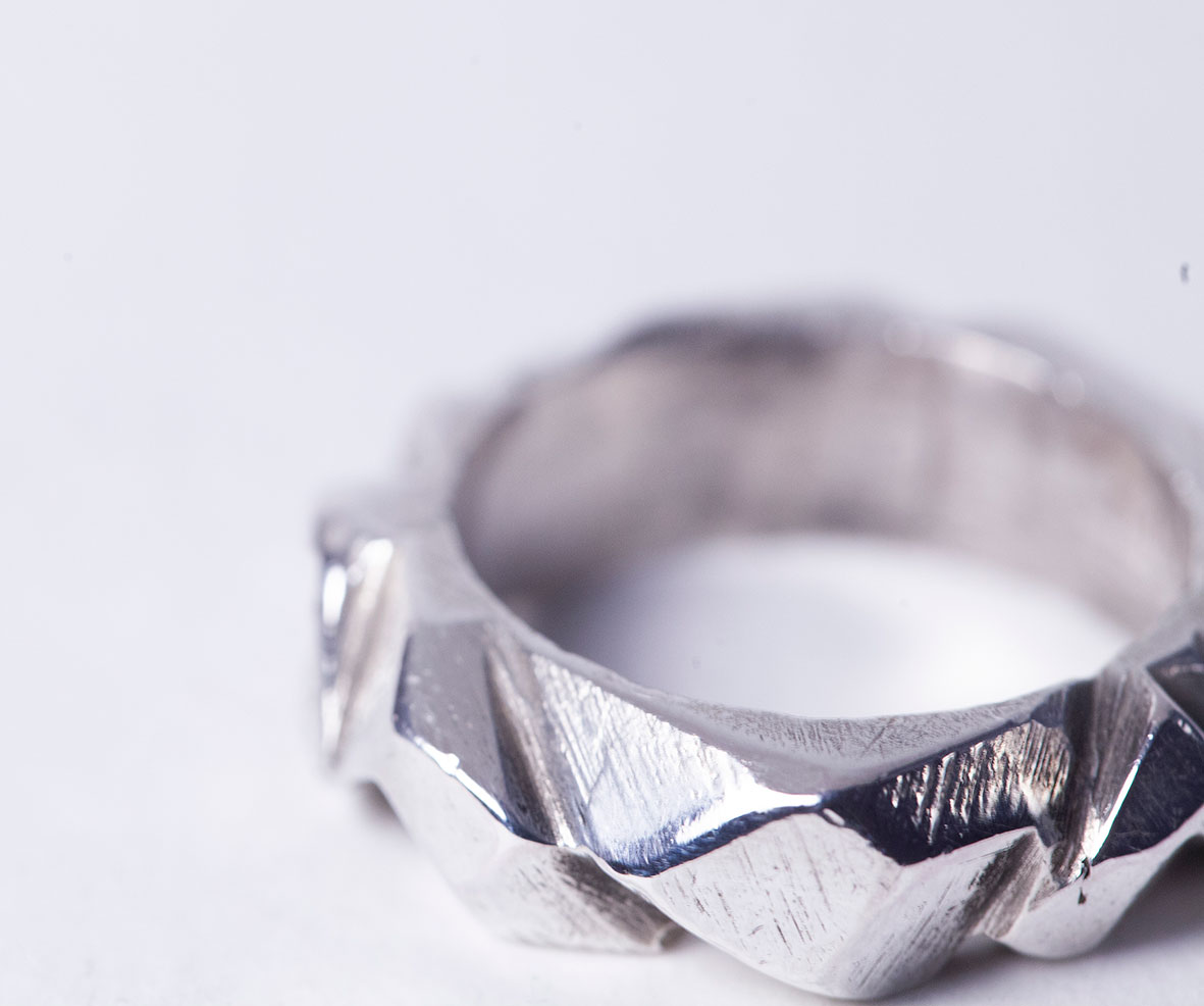 El anillo Mar de Hielo está realizado en plata 925 mediante la técnica de cera perdida. Inspirado en el cuadro de Friederich, su diseño se inspira en las formas irregulares de los bloques de hielo, con una geometría fragmentada que aporta carácter y singularidad. La superficie texturada refuerza la sensación de fuerza y movimiento, convirtiéndolo en una pieza contemporánea que destaca por su presencia escultórica.