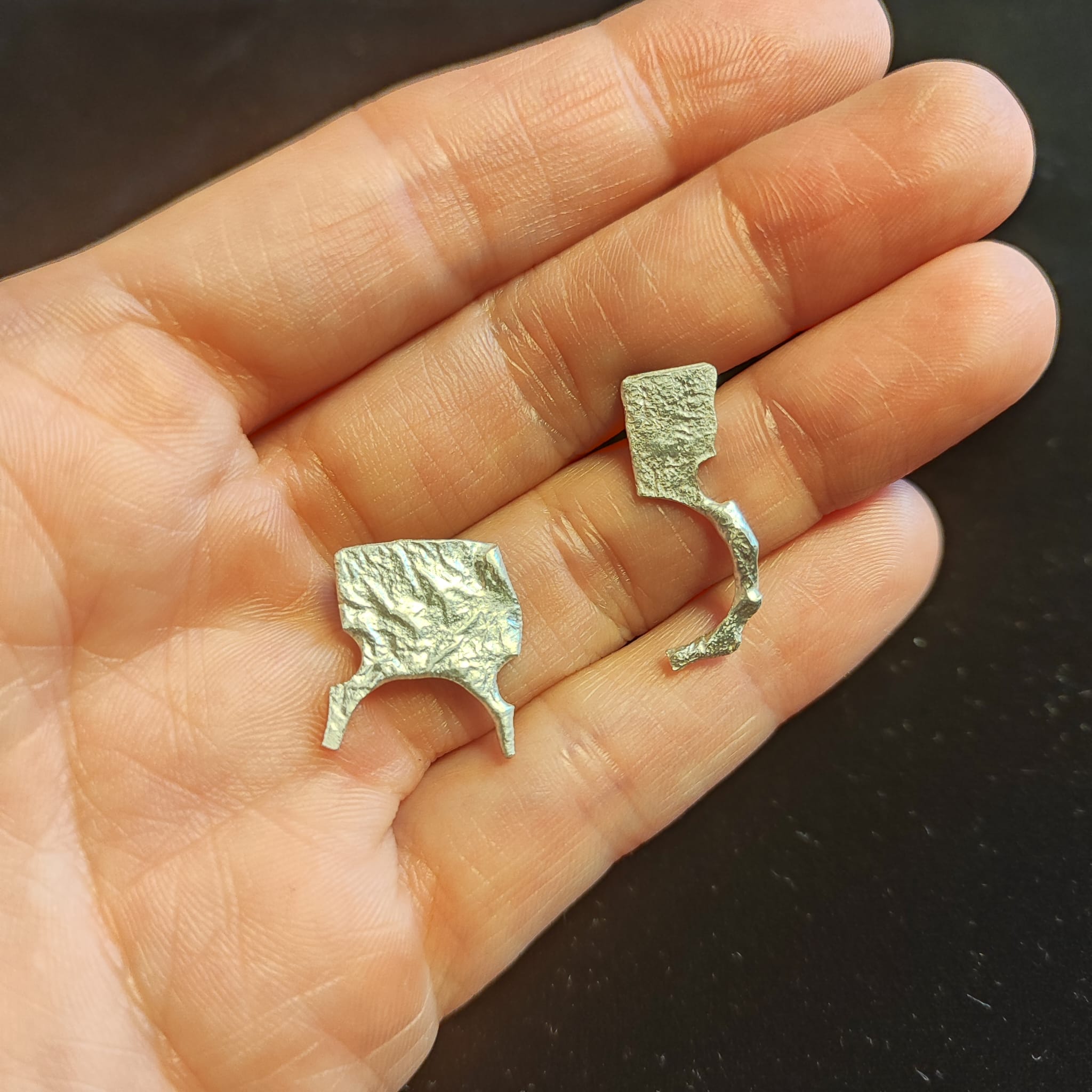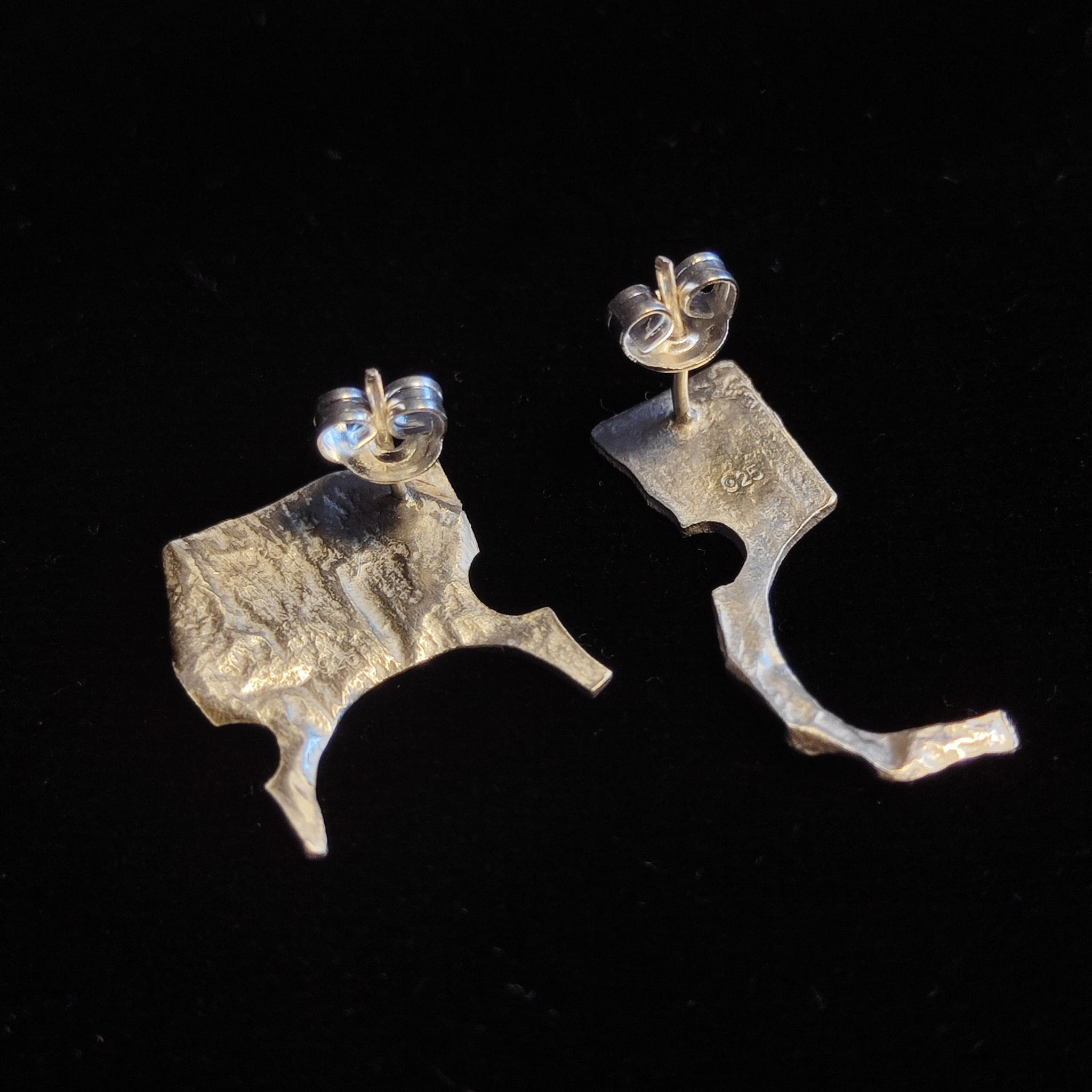 Pendientes en plata 925, pieza única realizada íntegramente a mano. Un diseño exclusivo que no se repetirá. Inspirados en las esculturas de Chillida, estas piezas dialogan con la arquitectura y el espacio.